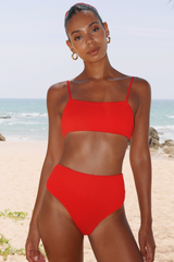'Red' Scrunch High Waist Bikini Bottoms